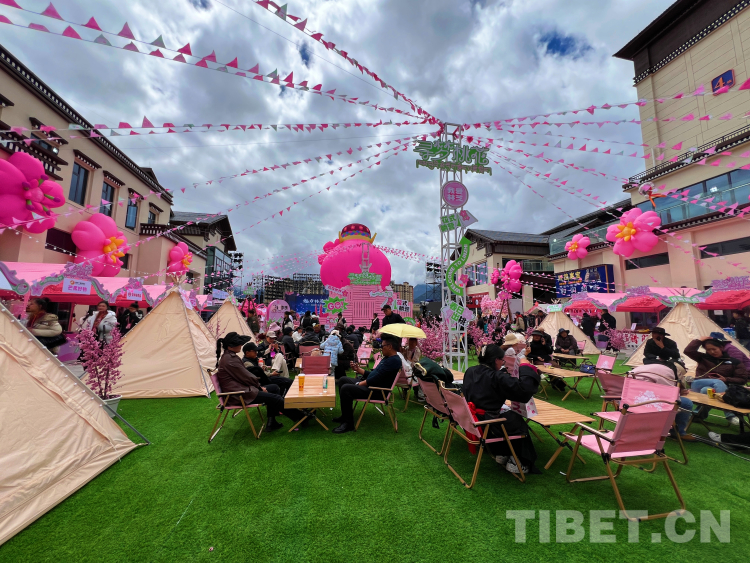 圖為游客在主會場工布天街公園“桃花嘉年華”現(xiàn)場體驗營地。攝影:德吉卓瑪