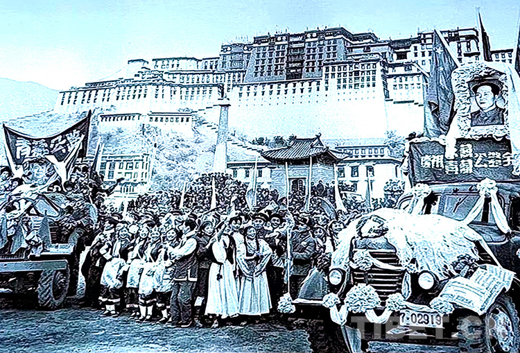 圖為1954年12月25日,在布達(dá)拉宮廣場(chǎng)舉行的青藏、川藏公路通車儀式(翻拍)