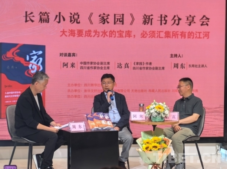 分享會(huì)上,小說(shuō)《家園》的作者、四川省作協(xié)副主席達(dá)真為讀者分享了新書(shū)的創(chuàng)作歷程,并與中國(guó)作家協(xié)會(huì)副主席、四川省作家協(xié)會(huì)主席、著名作家阿來(lái)展開(kāi)對(duì)談。
