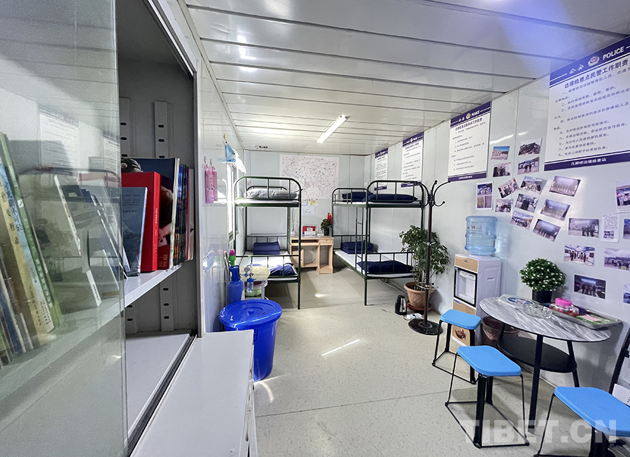 驛站負(fù)責(zé)人安文坤介紹,驛站設(shè)有“警民之家”住宿區(qū)2間房子8個(gè)床位、“旅客休息室”“警用裝備室”三個(gè)區(qū)域,其中“警民之家”房間內(nèi)有完善的生活設(shè)施,免費(fèi)提供暖氣、手機(jī)充電、Wi-Fi、高原綜合藥箱、便捷式制氧機(jī)、書籍、飲水機(jī)、洗衣機(jī)等,為遇困人員提供方便。他還說:“我們這個(gè)小小的驛站交通便捷度和硬件設(shè)施比起網(wǎng)紅酒店差得太遠(yuǎn)了,但是只要進(jìn)出我們定結(jié)縣的群眾和旅客遇到困難,我們?cè)敢庀敕皆O(shè)法去解決。”