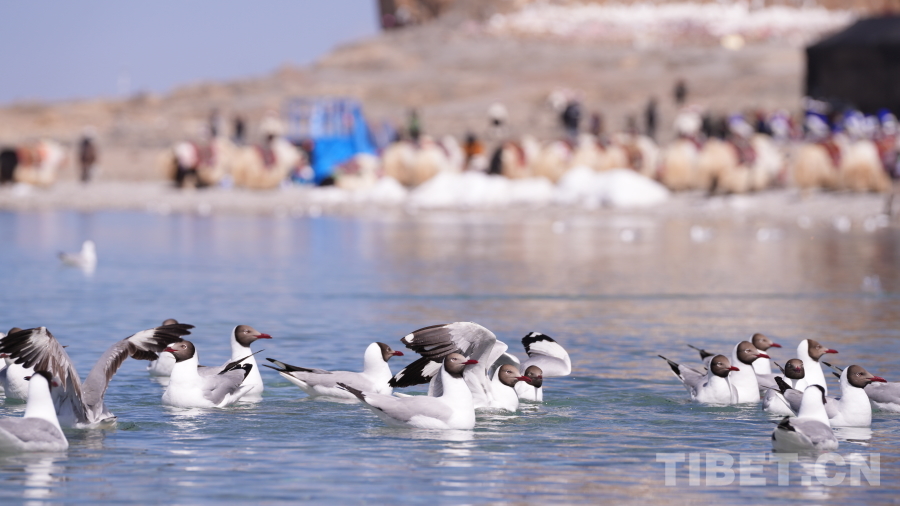 圖為在納木錯嬉戲的棕頭鷗 攝影:德吉卓瑪。