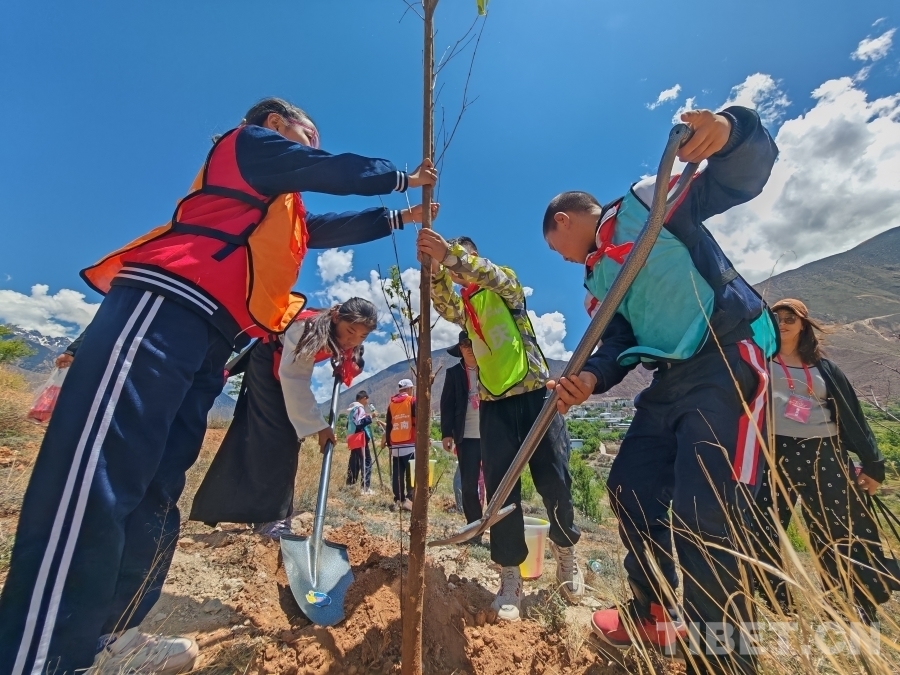 圖為四?。▍^(qū))市學(xué)生們在西藏昌都的土地上共同植樹