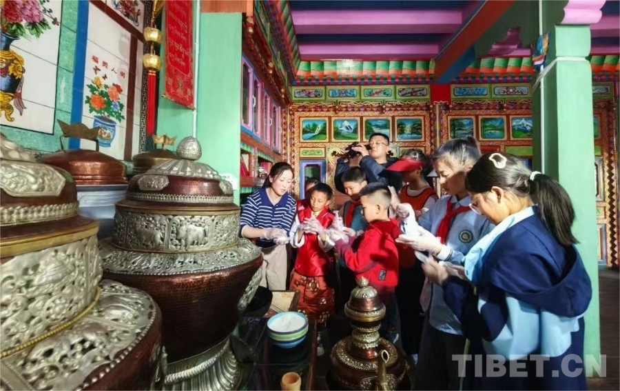 圖為四?。▍^(qū))市學(xué)生們在西藏昌都體驗卡塞的制作