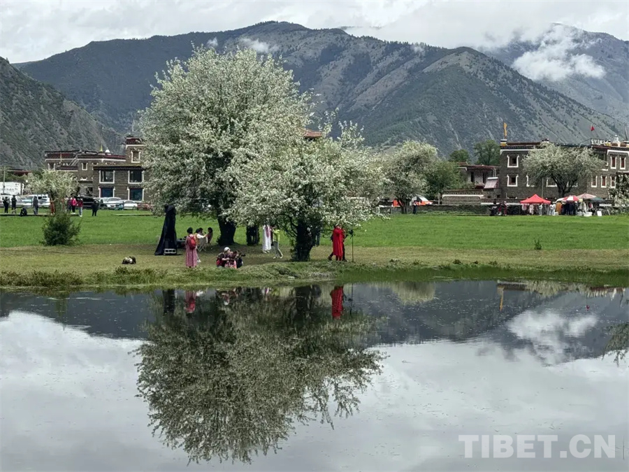 活動由中共康定市委、康定市人民政府主辦,中共康定市委宣傳部、康定市文化廣播電視和旅游局、甲根壩鎮(zhèn)人民政府承辦。來自全國各地的多名攝影師在海棠盛開時,打卡康定甲根壩。俄色花在風中飄蕩花落成雪,青稞苗在田地里碧綠翡翠茁壯成長,林間零星點綴的野草搖曳生姿,宛如世外桃源。山間星星點點的白,像極了海子筆下那句“面朝大海,春暖花開”,貢嘎海棠花期雖然短暫,卻如一場驚艷的邂逅,讓人甘心沉浸在這片刻的浪漫之中。