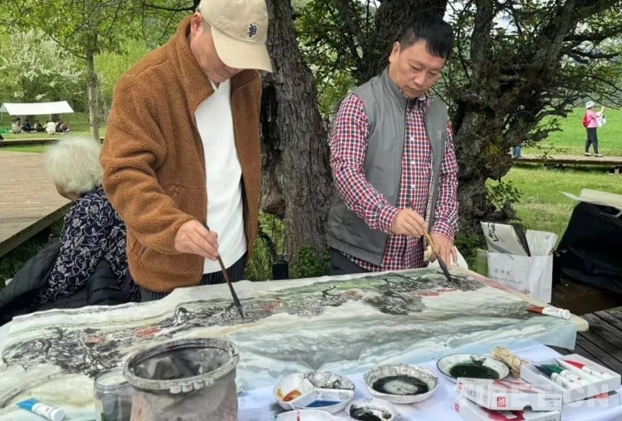 悠揚的樂聲自林間傳來,沿著步道往深處走去,一場特別的演奏會正在進行。枝頭海棠盛放,樹下游人如織,鋼琴、大提琴、笛子等各色樂器奏出的曲調(diào)在貢嘎海棠的映襯下更顯別樣風味,來自西安的韓先生細細聆聽木雅傳統(tǒng)非遺口弦的演奏后不禁感嘆道,“太美了!這個活動將音樂與貢嘎海棠花海巧妙融合,讓我感受到一種別樣的人與自然共生的和諧?!?/p>