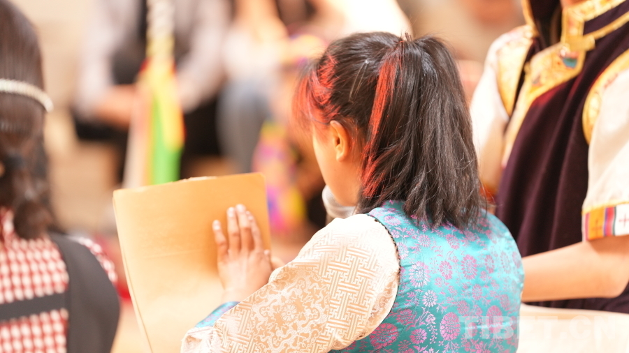 活動(dòng)現(xiàn)場,拉薩市特殊教育學(xué)校師生向西藏社會(huì)主義學(xué)院羅旦博士、中國藏學(xué)出版社代表、北京大方弘文圖書發(fā)行有限公司代表、西藏介觀文化藝術(shù)教育基金會(huì)代表敬獻(xiàn)了哈達(dá),贈(zèng)送了錦旗、畫作,對他們在新書出版中給予的支持和幫助表達(dá)了誠摯的謝意。隨后,拉薩市特殊教育學(xué)校學(xué)生為現(xiàn)場來賓表演了二重唱《愛在陽光下》、詩歌朗誦《光明》、舞蹈《舞動(dòng)大地》等精彩的節(jié)目,將活動(dòng)推向高潮,現(xiàn)場觀眾紛紛鼓掌叫好,氣氛十分感人。