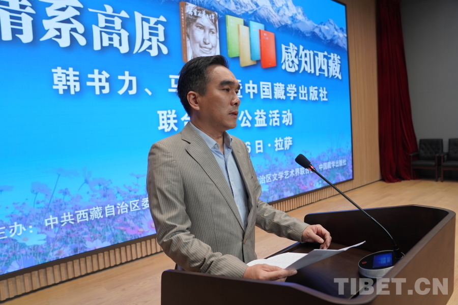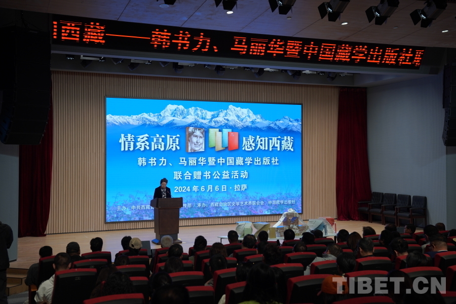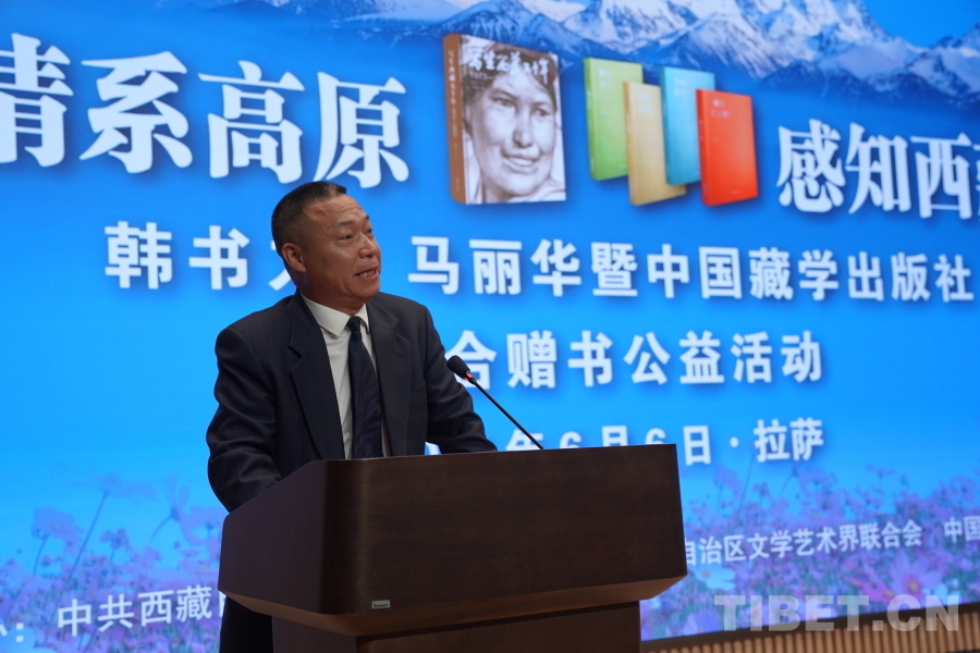 中國西藏網(wǎng)訊 6月6日上午,由西藏自治區(qū)黨委宣傳部主辦,自治區(qū)文聯(lián)、中國藏學(xué)出版社承辦的“情系高原 感知西藏——韓書力、馬麗華暨中國藏學(xué)出版社聯(lián)合贈書公益活動”在西藏美術(shù)館學(xué)術(shù)報告廳舉辦。自治區(qū)黨委宣傳部副部長何瑞,中國藏學(xué)出版社社長洪濤,自治區(qū)文聯(lián)黨組成員、副主席陳人杰,自治區(qū)黨委原常委、自治區(qū)政協(xié)原副主席德吉措姆,自治區(qū)文聯(lián)原主席、西藏美術(shù)家協(xié)會原主席韓書力,中國藏學(xué)出版社原總編輯、自治區(qū)文聯(lián)原副主席、西藏作家協(xié)會原副主席馬麗華等參加活動。