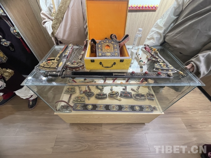 圖為金屬鍛造的嘎烏盒、火鐮、針線包 攝影:莫干措
