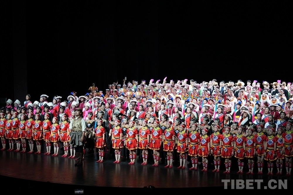 演出最后,西藏、北京兩地各所學(xué)校的孩子們都身著各民族演出服飾,手挽手、心連心,在舞臺(tái)上圍繞成向心圓,共同舞動(dòng)《唱支山歌給黨聽》,各民族一心向黨、團(tuán)結(jié)友愛的深情厚誼令人溫暖和感動(dòng)。 “這次有機(jī)會(huì)在國家大劇院的舞臺(tái)上與北京的同學(xué)們一同交流,我感到非常榮幸。這是我第一次來到北京,我參觀了許多書本上描述的著名景點(diǎn),感覺理想變成了現(xiàn)實(shí)。通過這次活動(dòng),我深刻感受到了我們五十六個(gè)民族之間的緊密聯(lián)系和親如一家的溫暖,我特別希望還能有這樣的機(jī)會(huì)再來北京?!眮碜晕鞑乩_北京實(shí)驗(yàn)中學(xué)的次仁國杰迫不及待地對(duì)記者表達(dá)著自己的興奮。