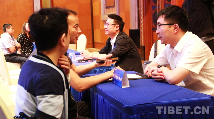 圖為西藏自治區(qū)通用航空產(chǎn)業(yè)招商引資推介會現(xiàn)場專門設(shè)置了洽談咨詢區(qū)域,西藏自治區(qū)有關(guān)單位與來自全國各地有合作與投資意向的公司進(jìn)行面對面的交流 攝影:劉莉
