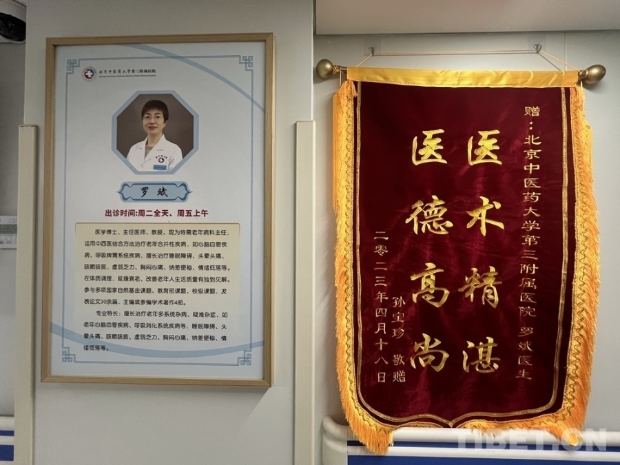 圖為北京中醫(yī)藥大學第三附屬醫(yī)院老年科住院部樓內懸掛的錦旗 攝影:王茜