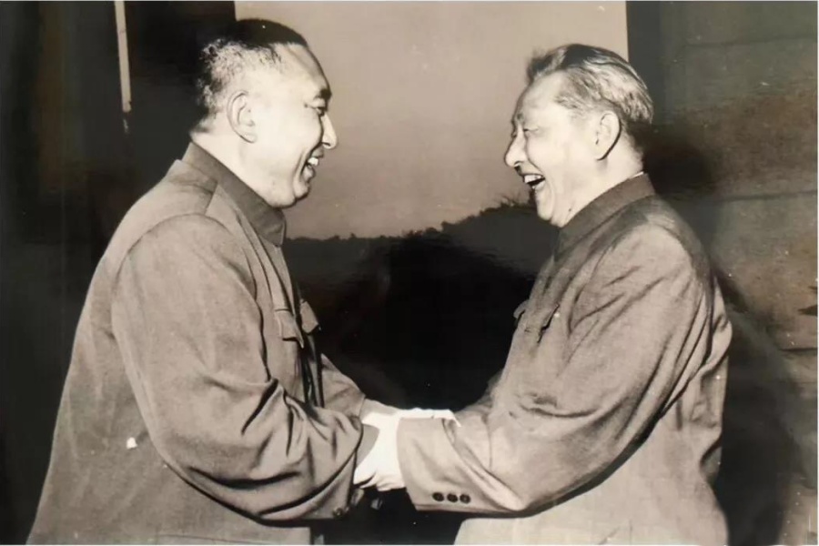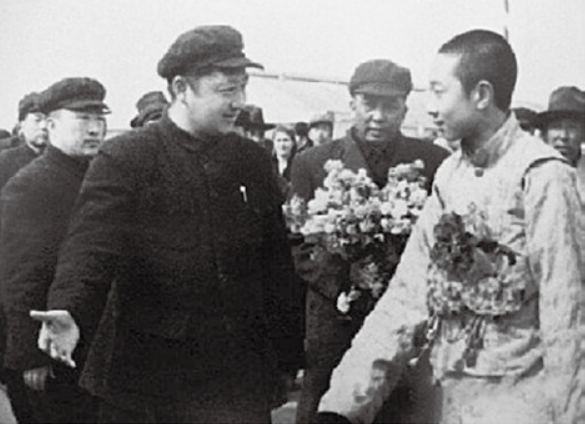 同年四月下旬,班禪從宏覺寺起程,赴京參加和平解放西藏的協(xié)議的簽訂。路過西安時,習仲勛親自到機場迎接班禪一行。這是班禪第一次會見習仲勛同志。他走下迎機艙時,習仲勛迎上來和班禪緊緊握手。這是他們神交已久的握手,彼此都留下了深刻的記憶。時隔多年后,班禪還給他的經(jīng)師和摯友嘉雅活佛說:“之前,我已和多少人握過手了。但習主任握著我的手時,我心中有一種全新的感悟,好像有一股溫暖的暖流在心中流過,這就是佛說的緣分福報?!绷曋賱淄净貞浰喽U初次見面時的情形寫道:“一個活脫脫的英俊藏族少年活佛形象出現(xiàn)在我的眼前……有志不在年高,他的愛國熱情和坦誠豪爽給我留下深刻的印象?!边@次見面是習仲勛和班禪四十載革命友誼的新起點。4月27日,班禪及堪廳僧俗官員一行45人抵達北京。周總理、朱德副主席等中央領導前往火車站迎接班禪。“五一”國際勞動節(jié),毛主席在天安門城樓上親切接見班禪和阿沛,并作了長時間的談話,意義重大。
