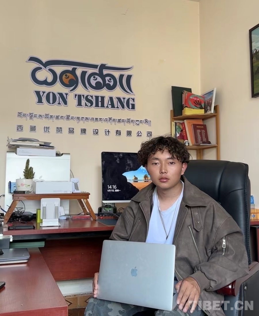 次仁頓珠是學院2022年平面設計專業(yè)的畢業(yè)生,也是全國第一屆職業(yè)技能大賽“西部技能之星”獲得者,我們到訪時他剛好回校做單元展。次仁頓珠畢業(yè)后和四個合伙人一起在拉薩創(chuàng)業(yè),創(chuàng)辦了優(yōu)贊品牌設計有限公司,主要業(yè)務包括產品包裝設計、logo設計和品牌設計。創(chuàng)業(yè)伊始全靠幾個合伙人自己出去推銷,如今經(jīng)過老客戶口口相傳,很多客戶主動來找他們,生意越來越好。“創(chuàng)業(yè)兩年多,我大概分紅了40多萬,今年我們幾個合伙人都買了車。未來我們計劃擴大公司的店面,好好裝修,然后開始線上直播,以后在拉薩買了房子從昌都接媽媽一起來住?!贝稳暑D珠向我們介紹,笑容中帶著羞澀與驕傲。