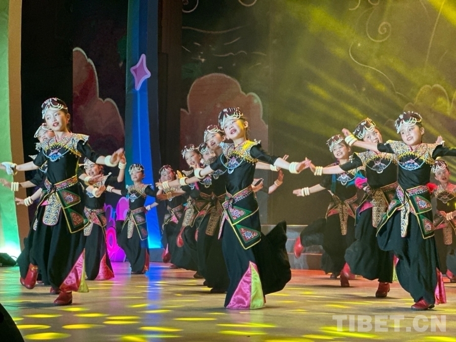 “我很喜歡跳舞,看到哥哥姐姐們在臺上表演,我很羨慕,我長大后也要站在舞臺上表演?!钡录渍湫∨笥颜f。(中國西藏網(wǎng) 記者/旦曲)