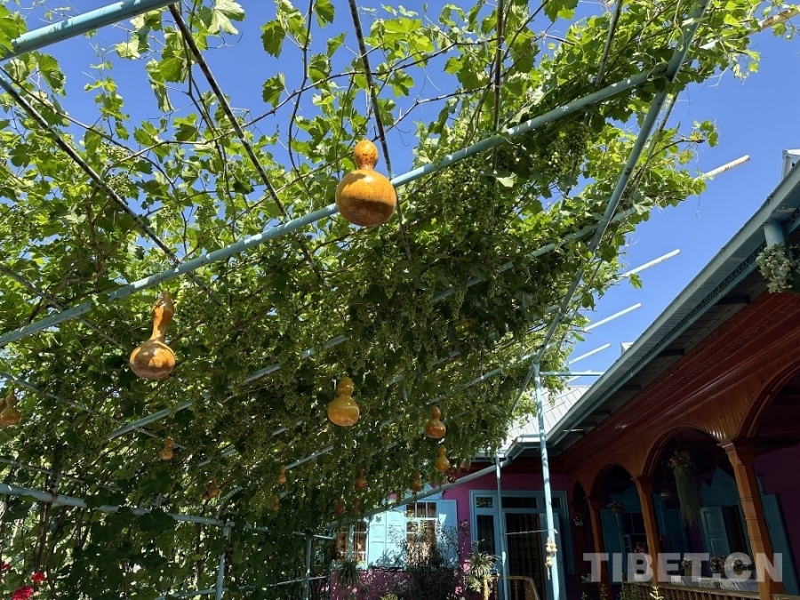 圖為喀贊其老街內(nèi)一處綠意盈盈的居民家中 攝影:楊眉笑