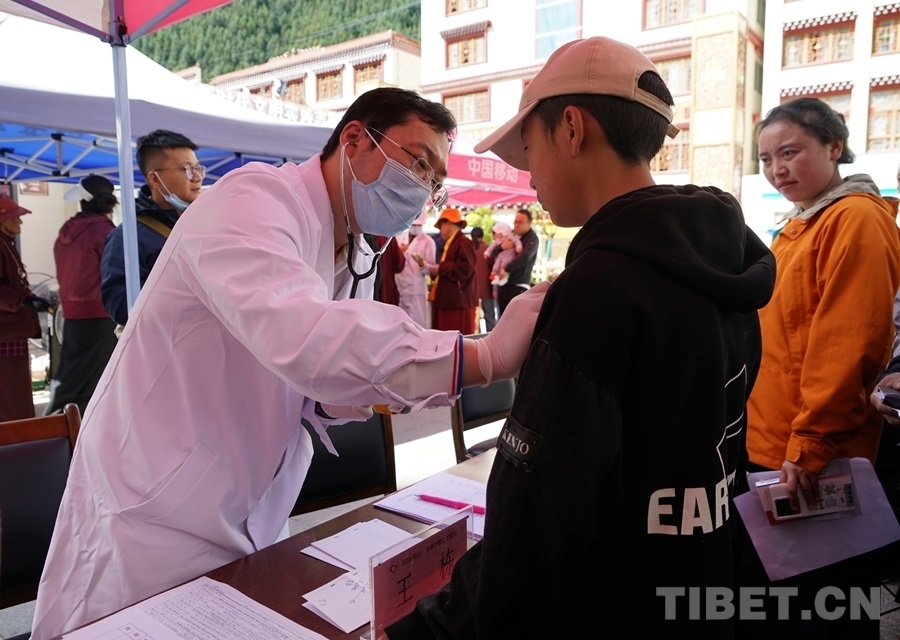 7月7日,“同心共鑄·情暖甘孜——‘同心·共鑄中國心’2024甘孜行”活動走進白玉縣,在縣城中心新時代文明實踐廣場開展義診活動。來自清華大學附屬北京清華長庚醫(yī)院、首都醫(yī)科大學附屬北京安貞醫(yī)院、中日友好醫(yī)院、北京大學首鋼醫(yī)院、北京豐臺醫(yī)院等首都12家醫(yī)療衛(wèi)生機構(gòu)的23位醫(yī)療專家在現(xiàn)場為當?shù)厝罕娞峁┝x診、咨詢、彩超檢查等醫(yī)療服務,并免費發(fā)放藥品。