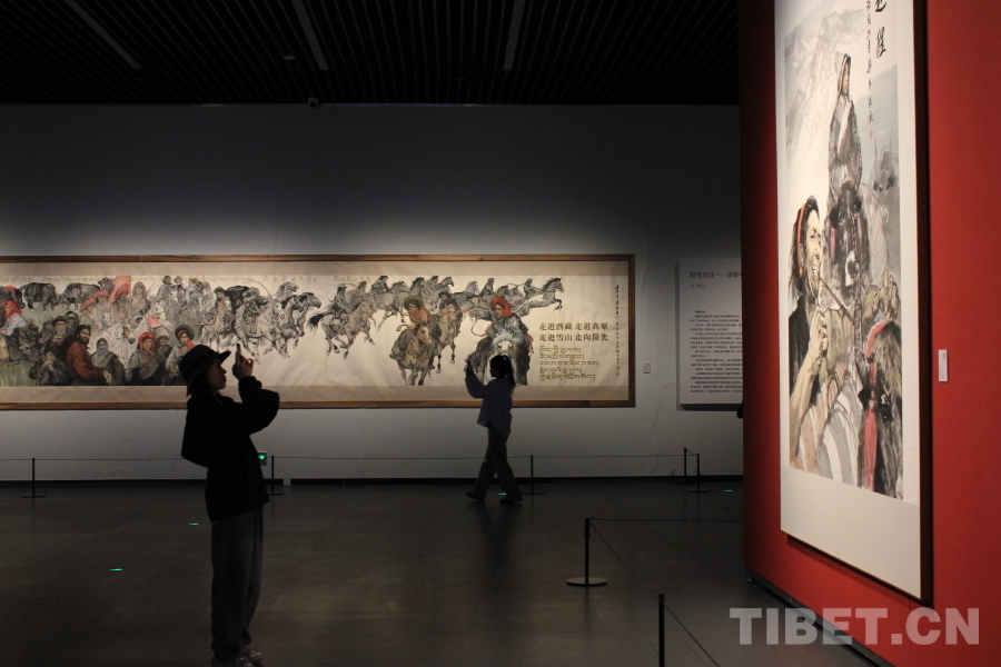 段勝前表示,此次展出梁平波先生的28幅西藏主題系列國畫作品,對人物的描繪惟妙惟肖、栩栩如生,作品大氣磅礴、令人震憾,極有感染力和穿透力,極具酥油味和糌粑香,生動再現(xiàn)了今日西藏各族人民樂觀向上的精神風(fēng)貌,真實(shí)還原了西藏人民生生不息頑強(qiáng)奮斗的精神力量,誠摯表達(dá)了對西藏這片藍(lán)天凈土的深厚情感,深深寄托了我們對偉大祖國的美好祝愿。希望以此次展覽為契機(jī),吸引更多的藝術(shù)家走進(jìn)西藏、了解西藏、宣傳西藏,進(jìn)一步促進(jìn)兩地文藝廣泛交往全面交流深度交融。