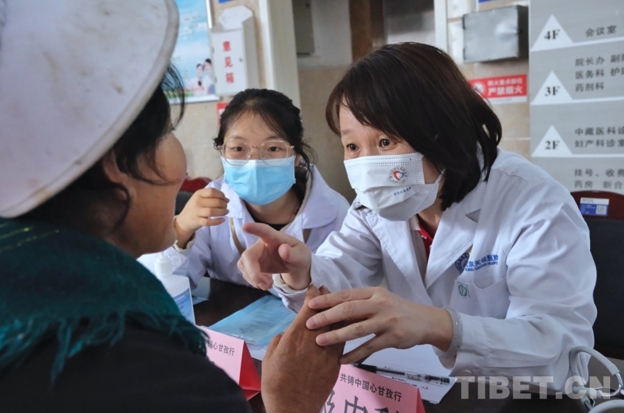 醫(yī)院大廳內(nèi),“同心共鑄·情暖甘孜”的紅色橫幅格外醒目。來(lái)自首都醫(yī)科大學(xué)附屬北京天壇醫(yī)院、北京宣武醫(yī)院、北京婦產(chǎn)醫(yī)院等單位的專家正在為當(dāng)?shù)厝罕姍z查、問(wèn)診。