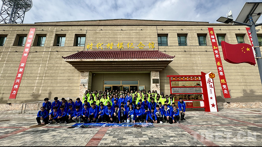 圖為香港青少年在尕布龍時(shí)代楷模紀(jì)念館前合影。攝影:趙振宇