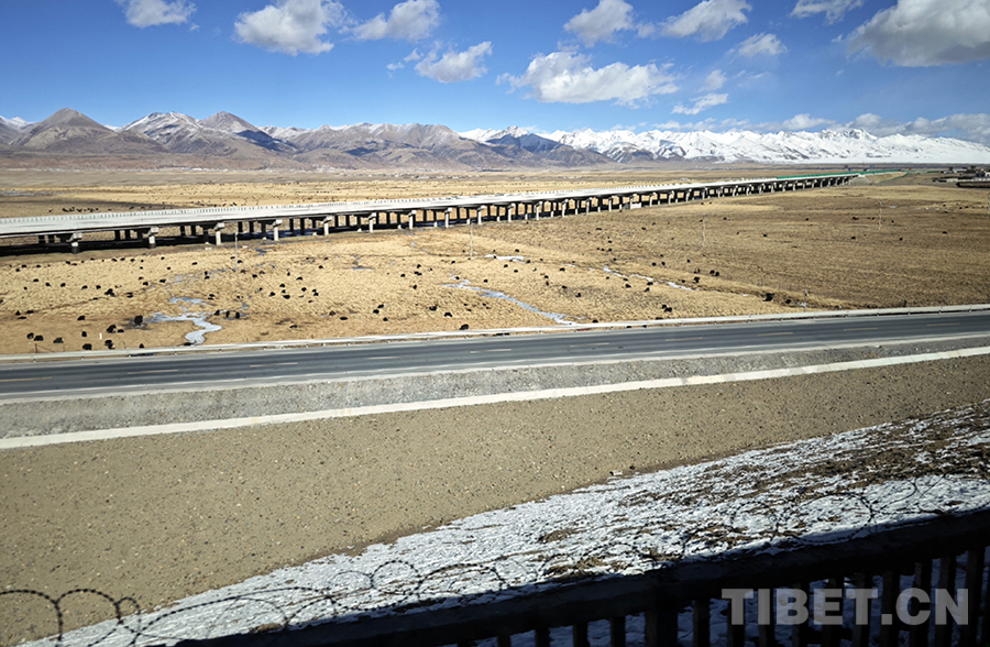 2021年,青藏公路拉薩至那曲段還修通了全長(zhǎng)295公里、時(shí)速120公里的雙向四車道高速公路。
