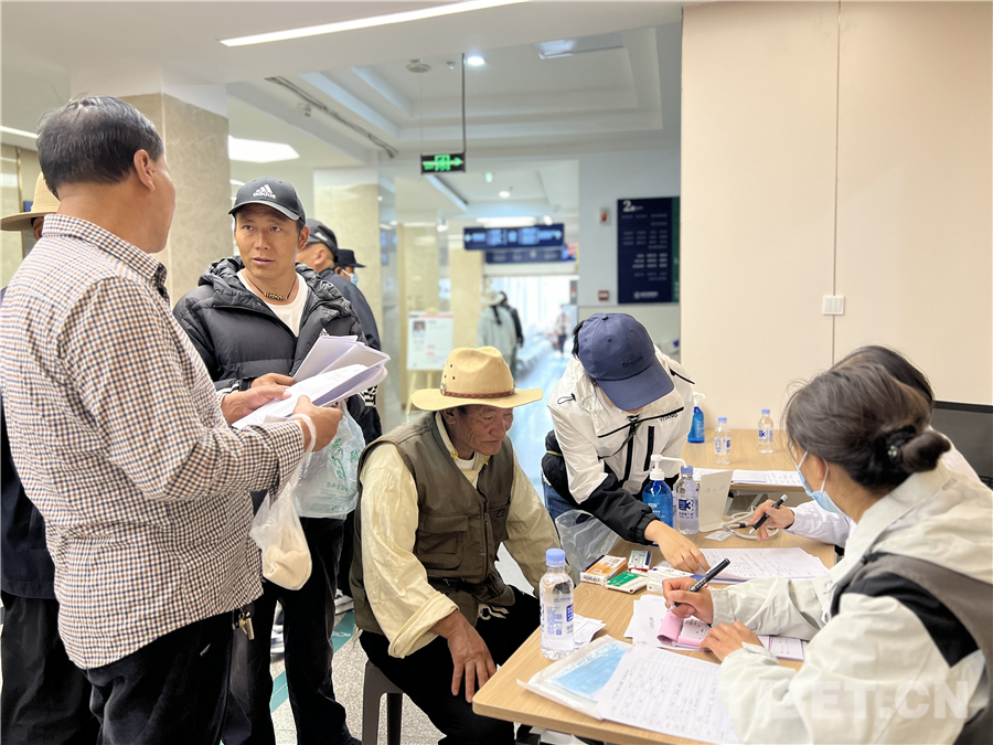 15日上午,在西藏阜康醫(yī)院早已布置好的義診點(diǎn),來自全國各地的院士專家對號(hào)入座,每個(gè)人旁邊還安排了一位翻譯,一切準(zhǔn)備就緒。前來咨詢、問診的患者根據(jù)自身需求排隊(duì)等待咨詢、檢查?,F(xiàn)場醫(yī)護(hù)人員耐心傾聽市民群眾講述自己的病癥,為他們測量血壓、把脈,叮囑他們做好疾病調(diào)治、身體保健和疾病預(yù)防等事宜。同時(shí),為就診者仔細(xì)檢查,為有需要的就診者提供病情診斷、用藥指導(dǎo)。