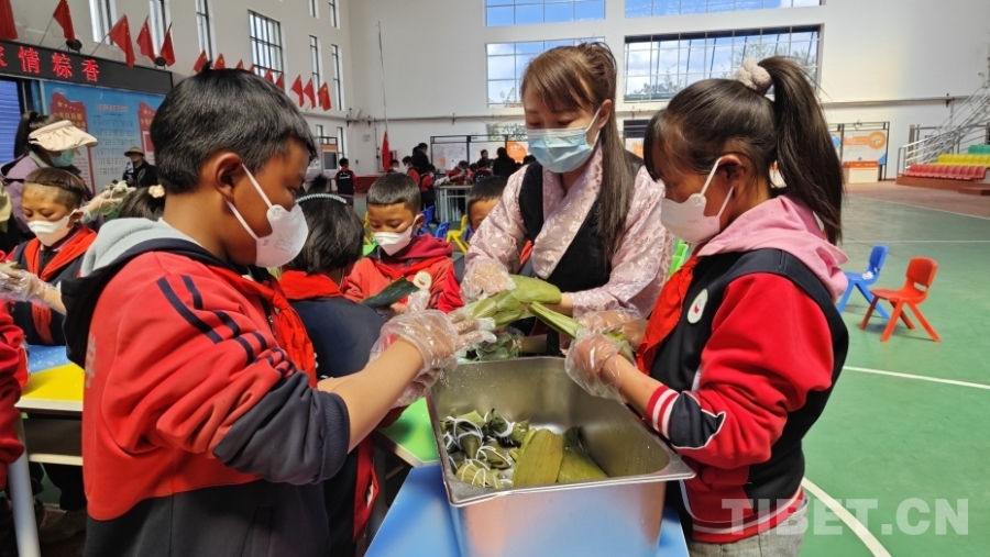 圖為高寧寧與學生們包粽子