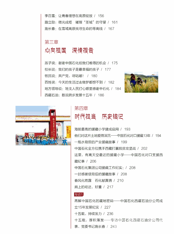 圖為《中國(guó)石化在西藏》書籍目錄(部分)