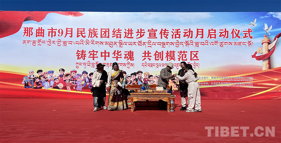 啟動儀式結(jié)束后,色尼區(qū)文藝團為現(xiàn)場觀眾獻上了那曲市民族團結(jié)進步主題歌曲《我們的和美羌塘》《羌塘普古》《國旗下的牧民》等一系列精彩的文藝表演。其中,《羌塘普古》以其別具特色的藏族舞蹈,展現(xiàn)了那曲高原的壯麗與人民的豪邁;小品《中華民族一家親》通過生動的故事情節(jié)和真摯的情感表達,深刻詮釋了中華民族多元一體的文化內(nèi)涵和各民族之間血濃于水的深厚情誼?,F(xiàn)場笑聲不斷、氣氛活躍、熱鬧非凡,充分展示了那曲市民族團結(jié)進步的良好氛圍。(中國西藏網(wǎng) 記者/楊加才讓 旦曲)