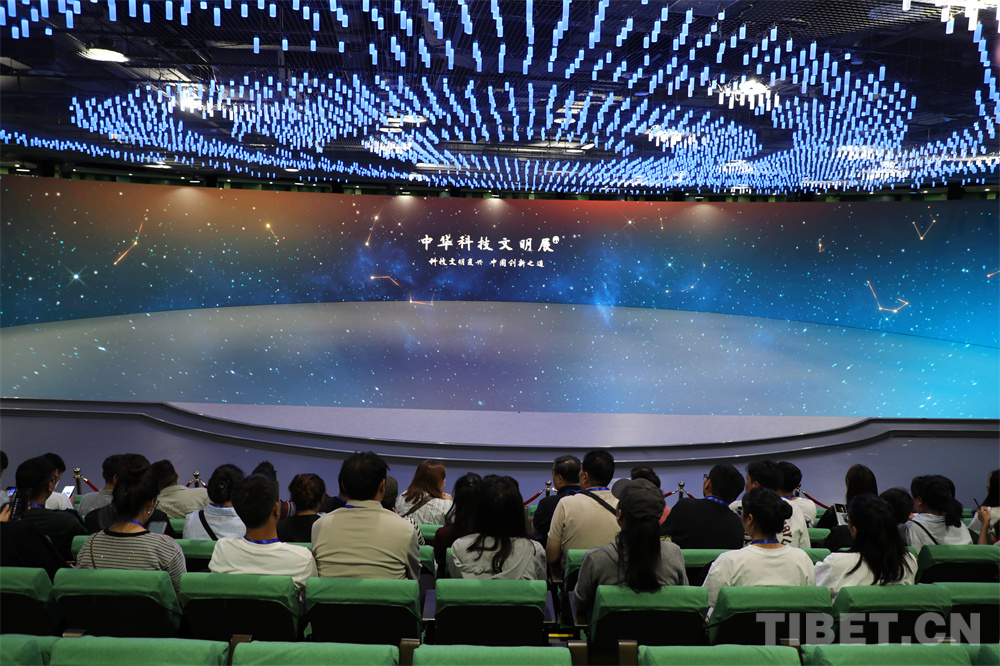 圖為西藏自治區(qū)科技專(zhuān)干進(jìn)京考察學(xué)習(xí)團(tuán)參觀中國(guó)科學(xué)家博物館,觀看中華科技文明展短片 攝影:王茜