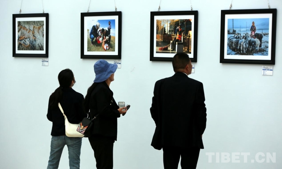 圖為當?shù)馗刹?、群眾等參觀“象雄古韻·天上阿里”第四屆網(wǎng)絡(luò)影像大賽優(yōu)秀作品展 攝影:王佳豪