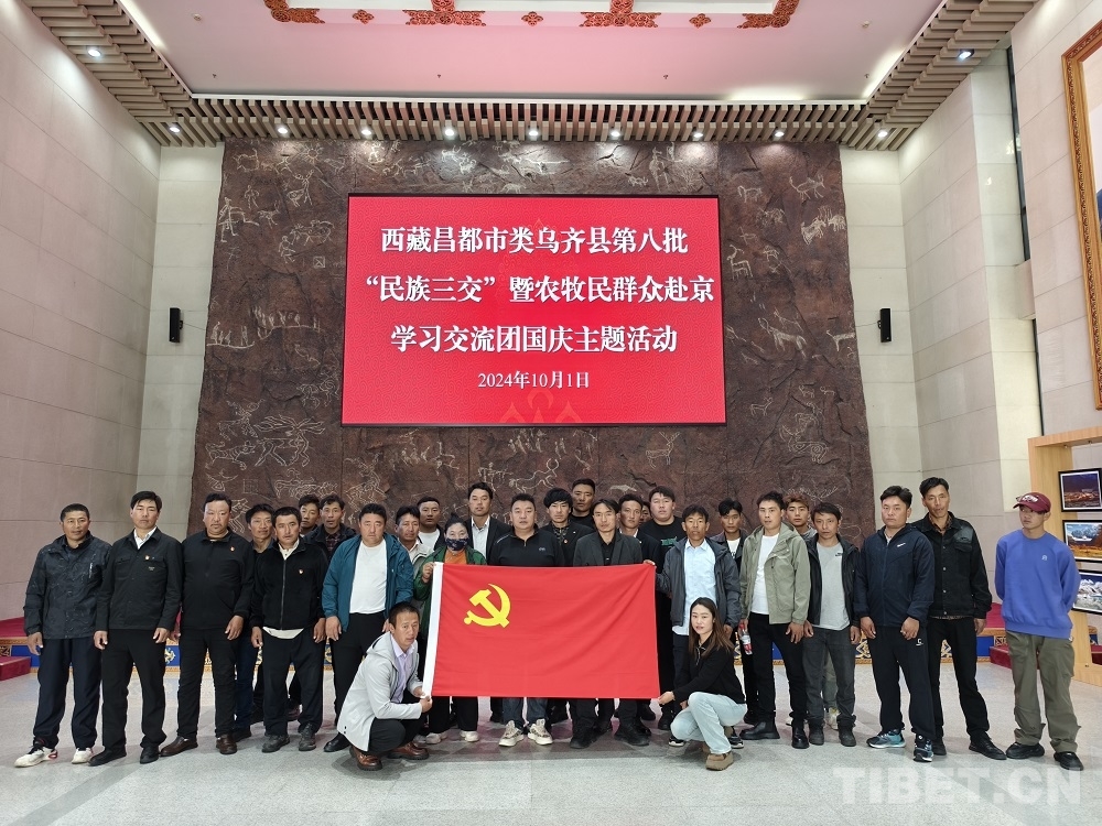 中國西藏網(wǎng)訊 金秋的北京城,洋溢著節(jié)日的喜慶與祥和。10月1日上午,西藏自治區(qū)昌都市類烏齊縣的第八批“民族三交”暨農(nóng)牧民群眾赴京學習交流團來到中國藏學研究中心西藏文化博物館進行參觀考察。