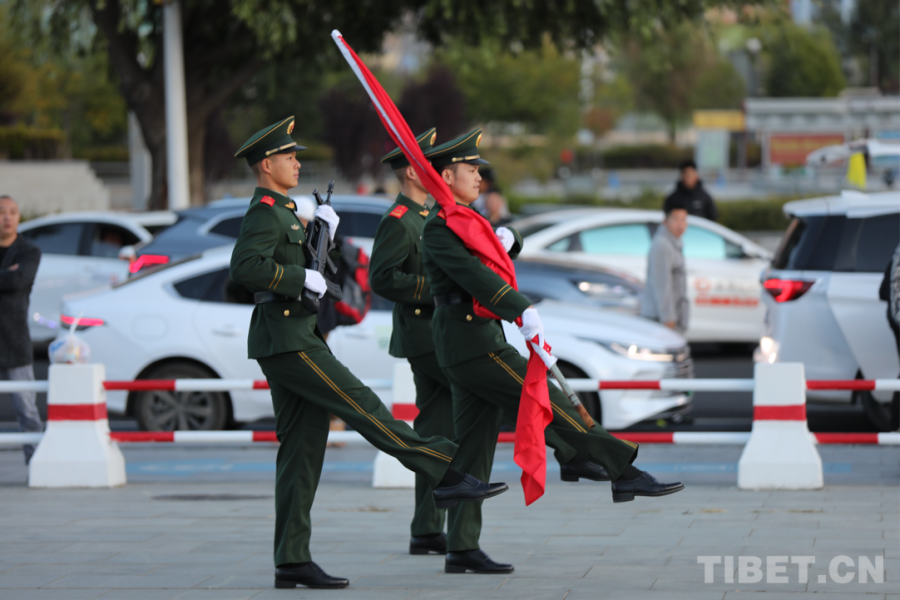 中國(guó)西藏網(wǎng)訊 在新中國(guó)成立75周年這一榮耀時(shí)刻,拉薩火車(chē)站舉行了一場(chǎng)莊嚴(yán)而隆重的升國(guó)旗儀式。10月1日上午8時(shí)整,雄渾的國(guó)歌聲奏響,駐站武警儀仗隊(duì)邁著整齊劃一的步伐,護(hù)衛(wèi)著五星紅旗走向國(guó)旗基座。在火車(chē)站干部職工的凝視下,五星紅旗冉冉升起,那是祖國(guó)繁榮昌盛的象征。