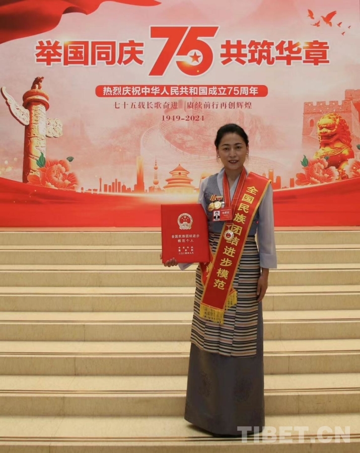 75年來,黨和國家采取各種優(yōu)惠政策和措施,推動民族地區(qū)社會事業(yè)的發(fā)展。對此,白瑪央珍說,黨和國家一直以來對民族地區(qū)的關(guān)愛重視和特殊政策,讓民族地區(qū)的教育、交通、通信、能源等領(lǐng)域的基礎(chǔ)設(shè)施建設(shè)快速發(fā)展,產(chǎn)業(yè)結(jié)構(gòu)優(yōu)化升級,改善了民族地區(qū)的生產(chǎn)生活條件,讓民族地區(qū)的經(jīng)濟社會能依托自身資源稟賦和優(yōu)勢發(fā)展壯大。這些發(fā)展變遷讓她深刻感受到中華民族一家親的溫暖,也激勵其更加努力地投身于民族團結(jié)進步事業(yè)中。她表示,愿以此次獲得榮譽為新起點,發(fā)揮自身的模范帶頭作用,影響和帶動更多人參與到民族團結(jié)進步事業(yè)中來。(中國西藏網(wǎng) 記者/王茜 圖片由受訪者提供)