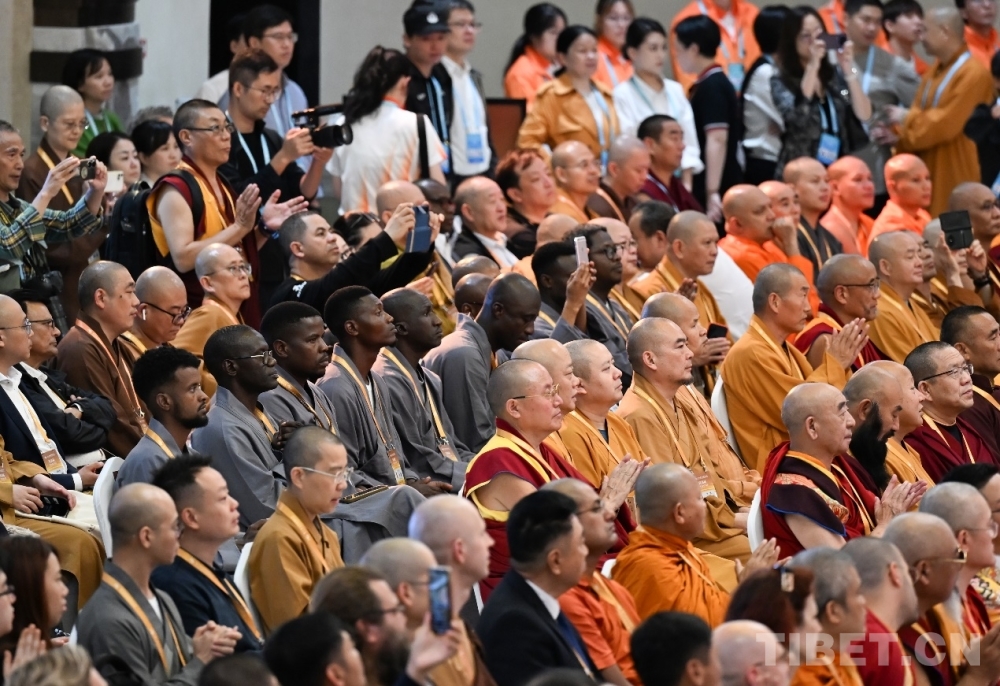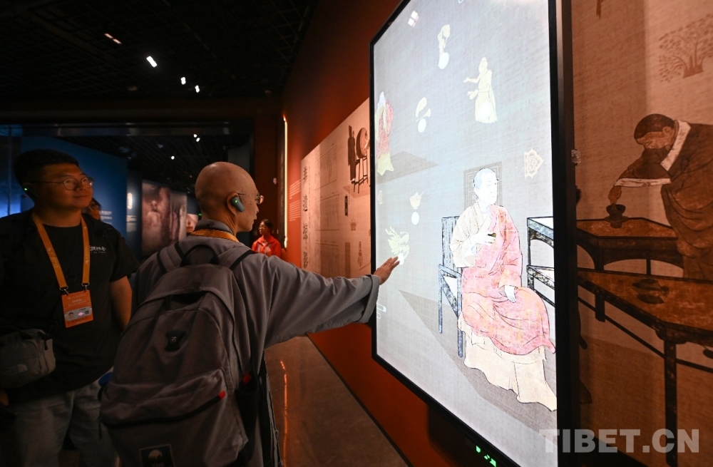 圖為與會者在“和合共生——世界佛教文化藝術展”上觀看佛教主題的非遺文化展示