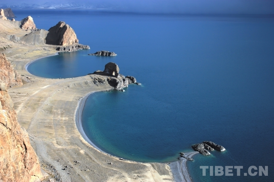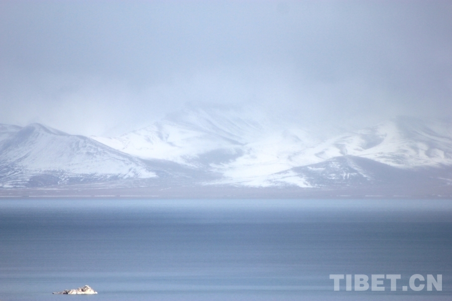中國西藏網(wǎng)訊 納木錯湖水湛藍(lán),湖面波光粼粼,圣象天門矗立在納木錯北岸,遠(yuǎn)處的雪山綿延,靜謐,祥和。