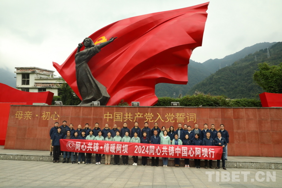 圖為“同心共鑄 情暖阿壩——‘同心·共鑄中國(guó)心’2024阿壩行”活動(dòng)赴四川省阿壩藏族羌族自治州阿壩縣的醫(yī)務(wù)志愿者們?cè)阢氪ㄓ承阏鹬羞z址開(kāi)展相關(guān)紀(jì)念活動(dòng) 攝影:莫干措