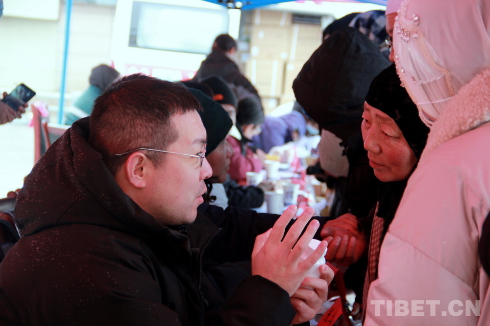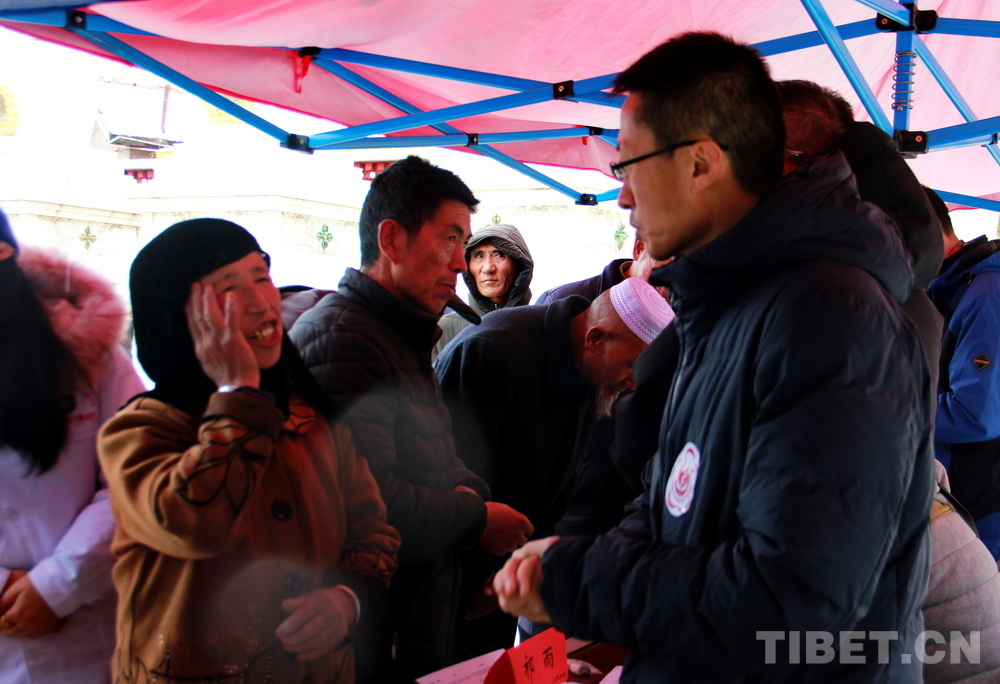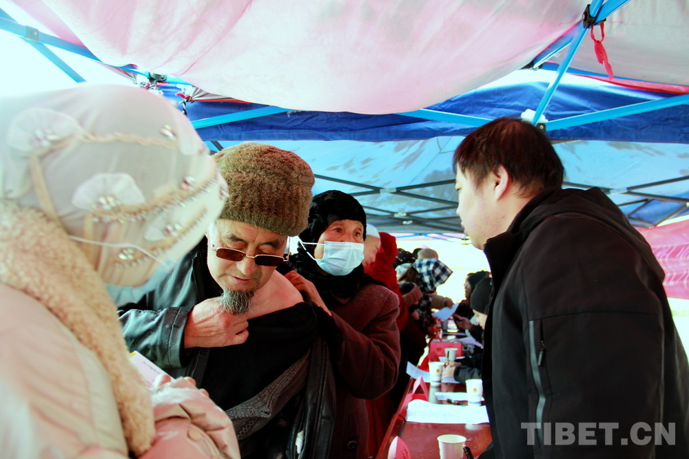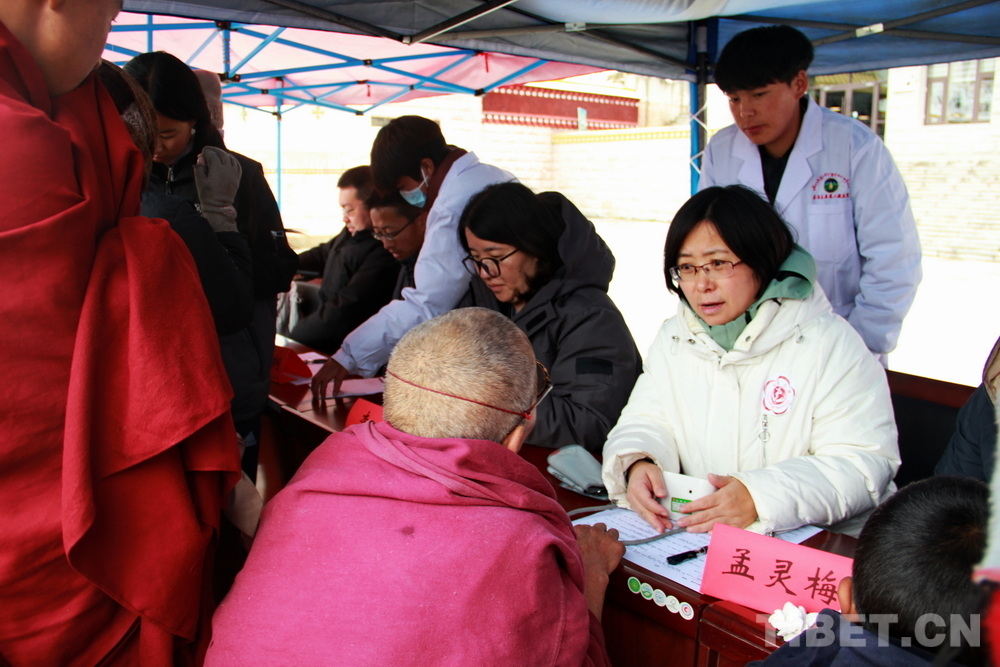 在郎木寺義診點(diǎn),此前為了容納更多群眾就診,因此將義診點(diǎn)設(shè)在了寺院門外的小廣場(chǎng)。盡管大雪紛飛,但提前得知義診消息的群眾已經(jīng)陸續(xù)趕來(lái),擔(dān)心臨時(shí)更換義診場(chǎng)所影響后續(xù)前來(lái)的群眾就診,醫(yī)務(wù)志愿者們毫無(wú)怨言地在臨時(shí)搭起的防雨棚下按時(shí)開(kāi)始了義診。