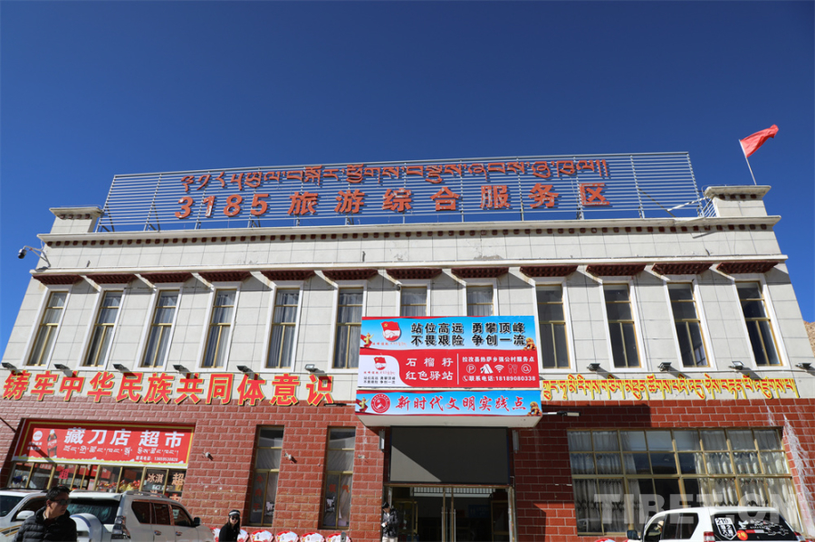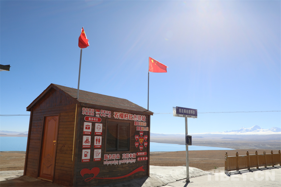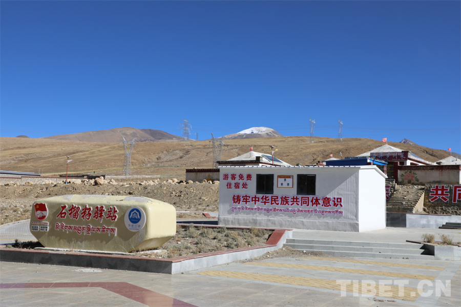 在西藏日喀則市拉孜縣熱薩鄉(xiāng)強公村,318國道5000公里紀念碑廣場上很多游客在三五成群拍照留念,廣場旁邊的樓房里也熱鬧非凡。樓里的石榴籽紅色驛站里,休息、喝水、充電等服務(wù)一應(yīng)俱全,還有當?shù)鼐用裨诖虽N售手工藝品、食品、特產(chǎn)等?!袄淇扇∨?、熱可納涼、渴可喝水、急可如廁、累可歇腳、傷可用藥”的“紅色驛站”也吸引更多游客在此駐足。