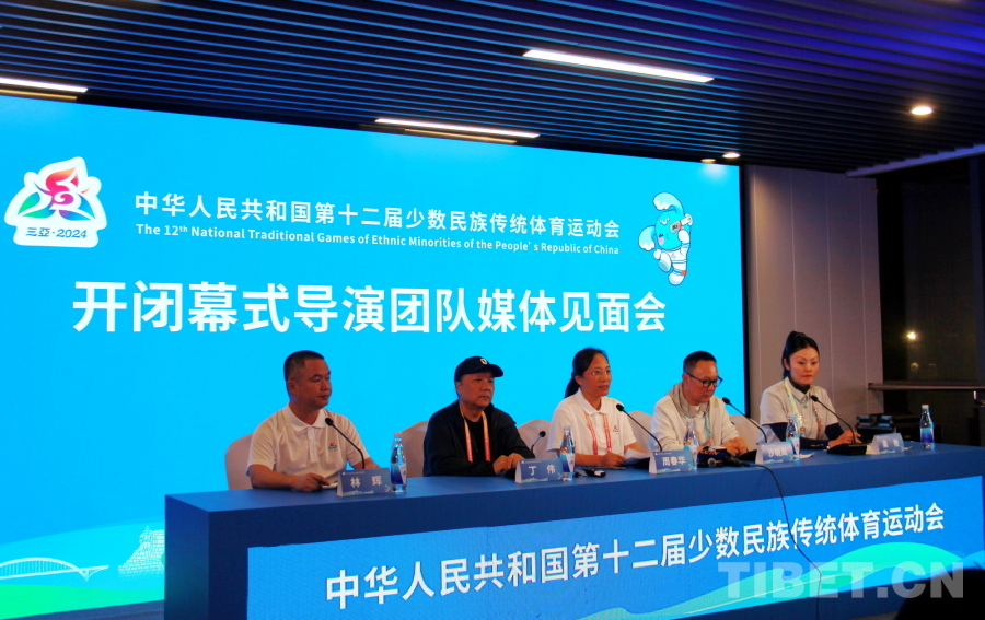 中國(guó)西藏網(wǎng)訊 11月22日,中華人民共和國(guó)第十二屆少數(shù)民族傳統(tǒng)體育運(yùn)動(dòng)會(huì)(以下簡(jiǎn)稱運(yùn)動(dòng)會(huì))在海南三亞開幕。開幕式結(jié)束后,運(yùn)動(dòng)會(huì)開閉幕式導(dǎo)演團(tuán)隊(duì)媒體見面會(huì)在三亞市體育中心舉行。導(dǎo)演團(tuán)隊(duì)就開閉幕式、主創(chuàng)團(tuán)隊(duì)、演員排練和幕后的精彩故事進(jìn)行了介紹。