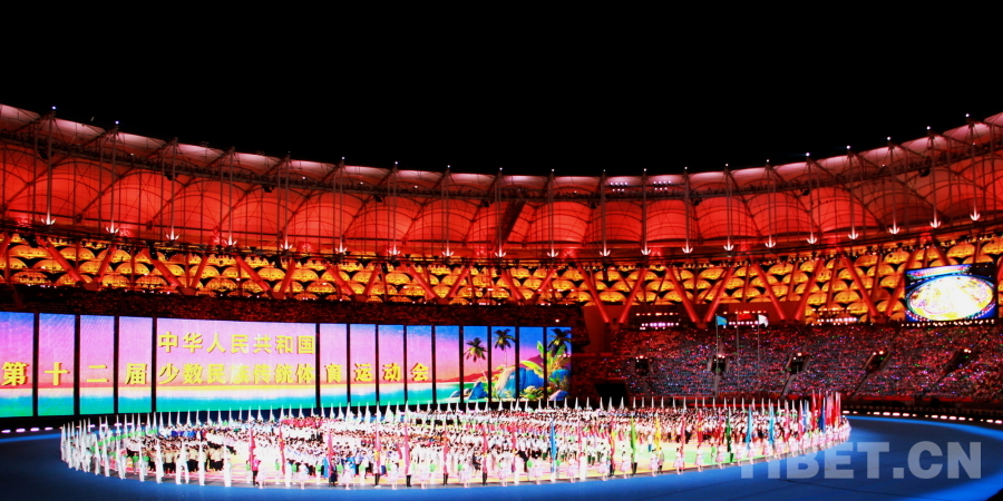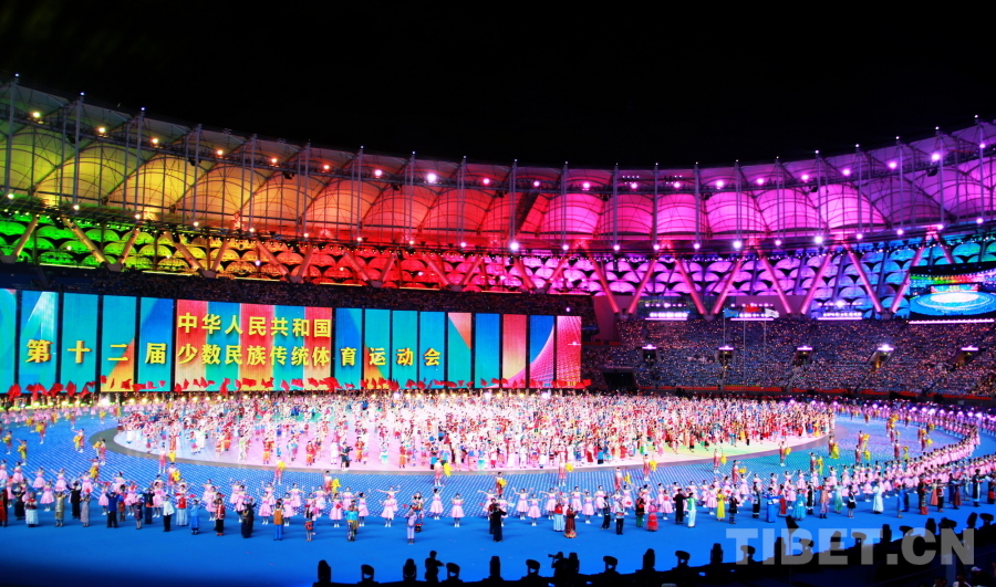 圖為第十二屆全國(guó)少數(shù)民族傳統(tǒng)體育運(yùn)動(dòng)會(huì)開幕式現(xiàn)場(chǎng) 攝影:劉莉