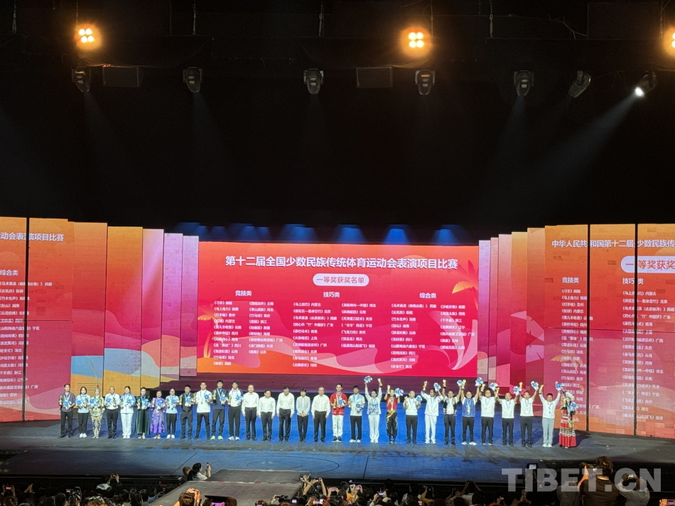 圖為第十二屆全國少數(shù)民族傳統(tǒng)體育運動會表演項目頒獎晚會現(xiàn)場 西藏自治區(qū)體育局供圖