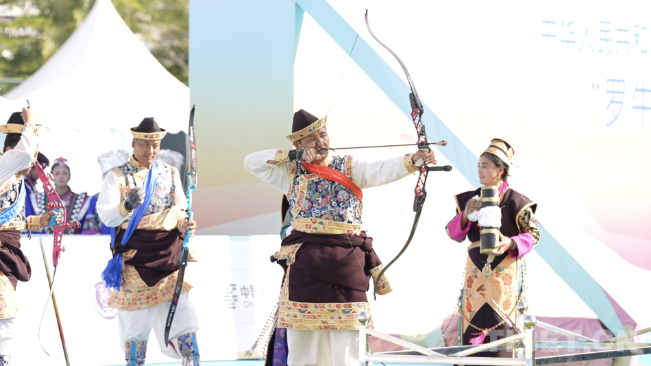 圖為第十二屆全國少數(shù)民族傳統(tǒng)體育運動會表演項目《響箭》 攝影:德吉卓瑪