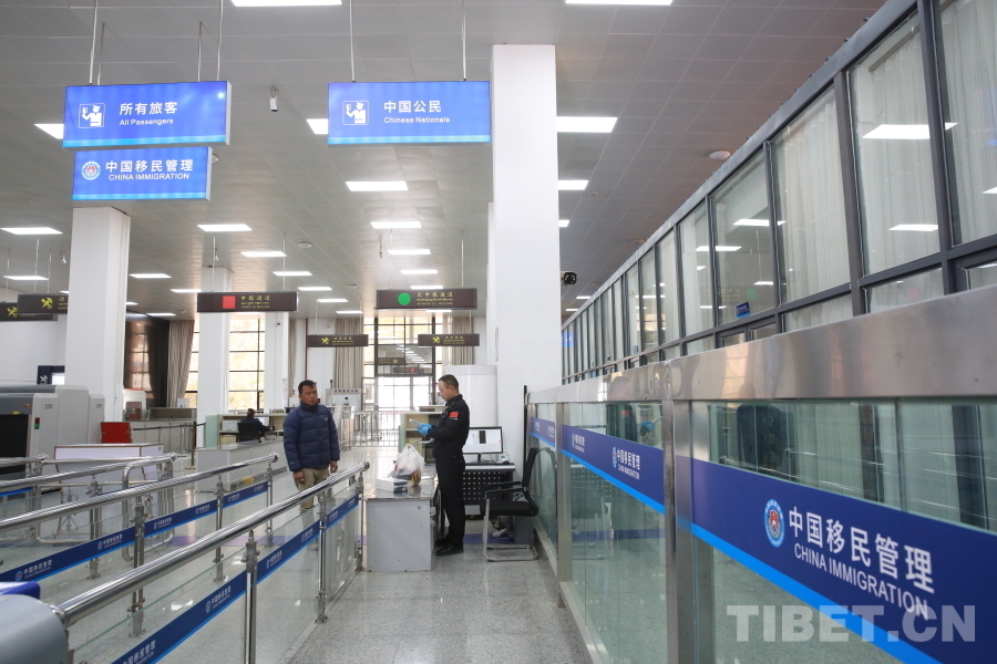 圖為12月1日,吉隆口岸聯(lián)檢大廳正式啟用新版對(duì)外開放口岸出入境邊防檢查現(xiàn)場(chǎng)標(biāo)志 攝影:肖富貴