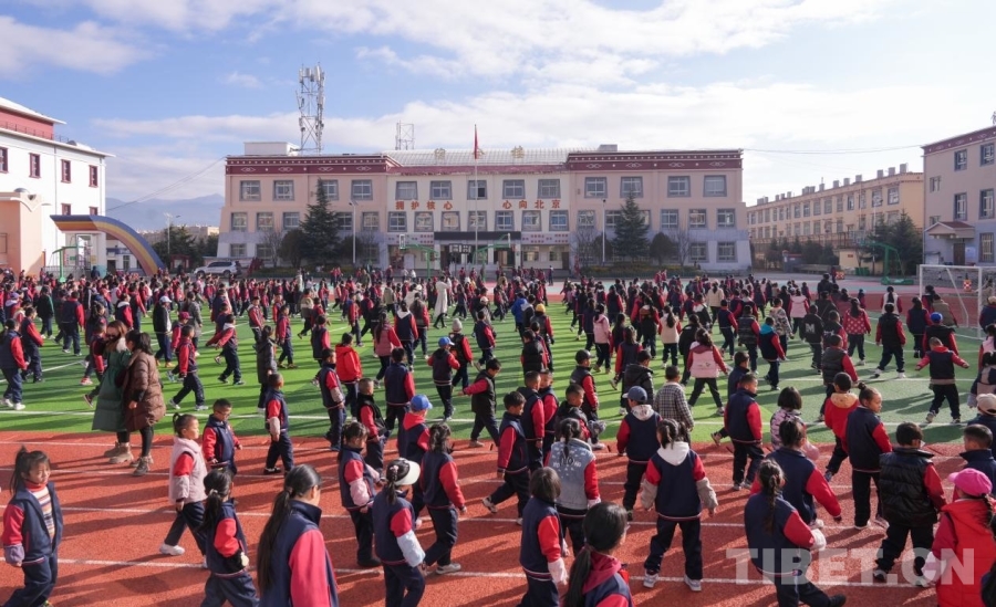 圖為香格里拉市民族小學學生們做民族操 攝影:賈華加