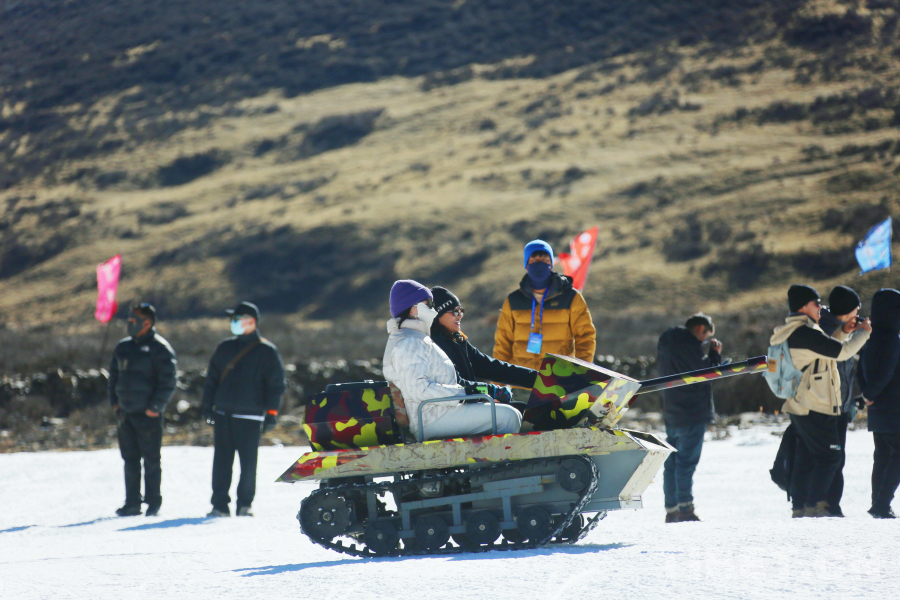 圖為雪地坦克體驗現(xiàn)場。攝影:德吉卓瑪