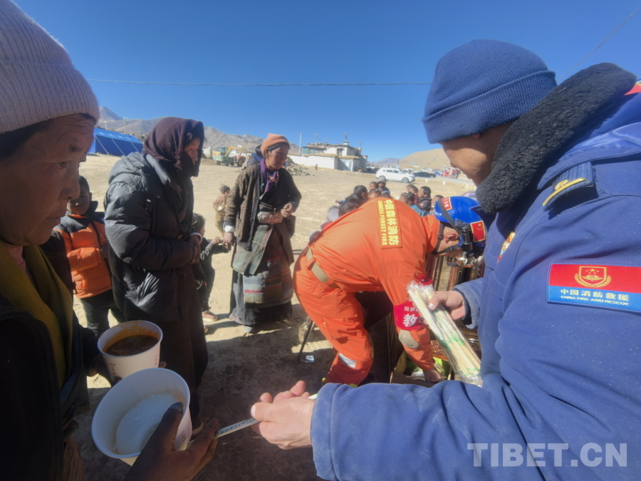 時值冬季,措昂村氣溫較低,連日來,參與措昂村安置點(diǎn)救援工作的拉薩森林消防大隊救援人員想受災(zāi)群眾所想、急受災(zāi)群眾所急,專門組織力量為受災(zāi)群眾送來熱乎乎的一日三餐,令受災(zāi)群眾在寒冬里感受到了融融暖意。(中國西藏網(wǎng) 記者/王淑 劉莉 陳浩力)