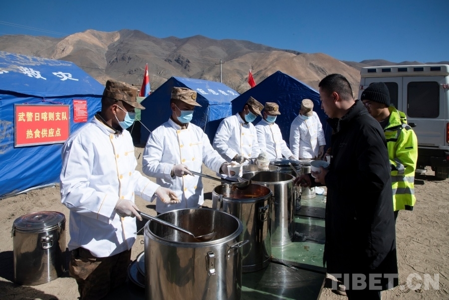 中國(guó)西藏網(wǎng)訊 “兩位同志,吃口飯?jiān)倮^續(xù)出發(fā)吧!”在西藏日喀則市定日縣長(zhǎng)所鄉(xiāng)森嘎村受災(zāi)群眾安置點(diǎn)現(xiàn)場(chǎng),我們被正在向受災(zāi)群眾供應(yīng)熱食的武警日喀則支隊(duì)官兵喊著停下了腳步。雖然已過午飯時(shí)間,但救援官兵們依然在不間斷供應(yīng)午飯,他們?cè)噲D喊下每一位正在救援現(xiàn)場(chǎng)忙碌的工作人員,想讓他們歇一歇,吃飽肚子再干活。