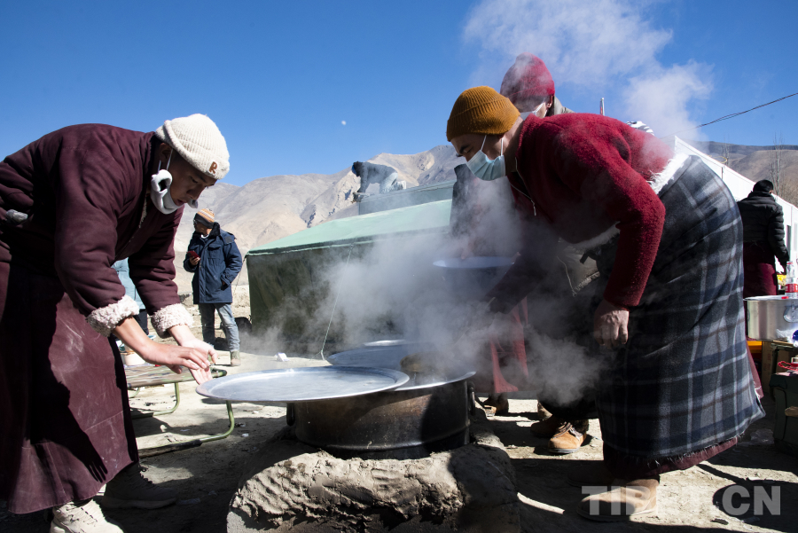 “輕傷的僧尼在我們縣醫(yī)院就診,重傷的僧尼我們第一時(shí)間就已轉(zhuǎn)運(yùn)至日喀則市人民醫(yī)院,其余的僧尼我們于地震當(dāng)日就已搭建好帳篷統(tǒng)一在森嘎曲德寺旁的空地進(jìn)行安置。”在受災(zāi)僧尼安置點(diǎn),一間間活動(dòng)板房整齊排列,僧尼們正在點(diǎn)柴燒水、切大白菜,為今日午餐做準(zhǔn)備。