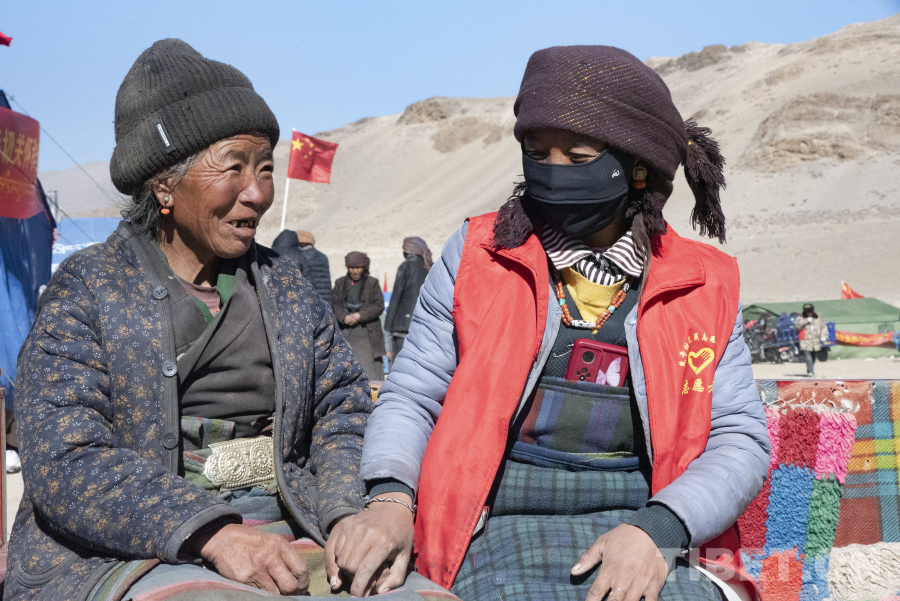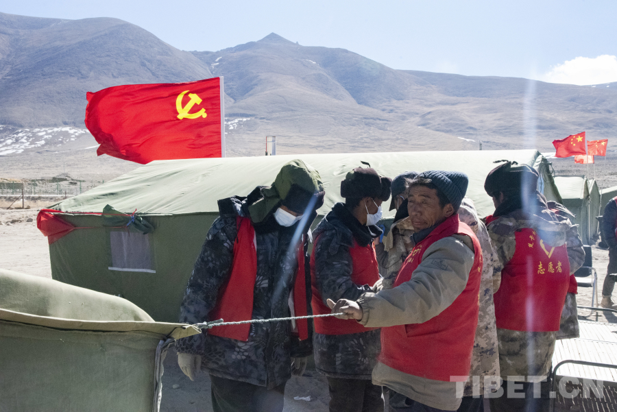 楚卡村村支書索朗正在和黨員志愿者們一起為受災安置點的帳篷進行加固。索朗告訴記者,2015年尼泊爾發(fā)生“4·25”地震時楚卡村受到了較大的影響,西藏自治區(qū)黨委和政府在災后對楚卡村房屋進行了加固和重建,正是得益于黨的好政策,才讓楚卡村在本次地震中沒有人員傷亡,房屋也沒有嚴重的坍塌。雖然楚卡村群眾經(jīng)歷過較大的地震,但在這次地震發(fā)生后群眾的恐慌情緒還是存在的,村內的黨員干部們第一時間將安置措施及情況通報給村民,雖然他們現(xiàn)在仍然居住在安置帳篷內,但他們知道將很快住上板房,對未來的重建充滿了期待。