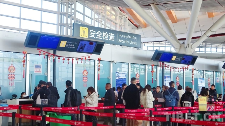 圖為春運(yùn)首日的拉薩貢嘎國(guó)際機(jī)場(chǎng)